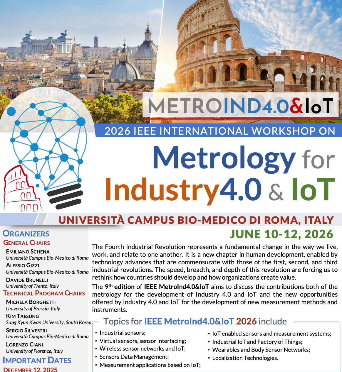 The Program Committee is inviting Extended Abstracts (from 4 to 5 pages) for the IEEE MetroInd4.0&IoT 2026 Workshop.